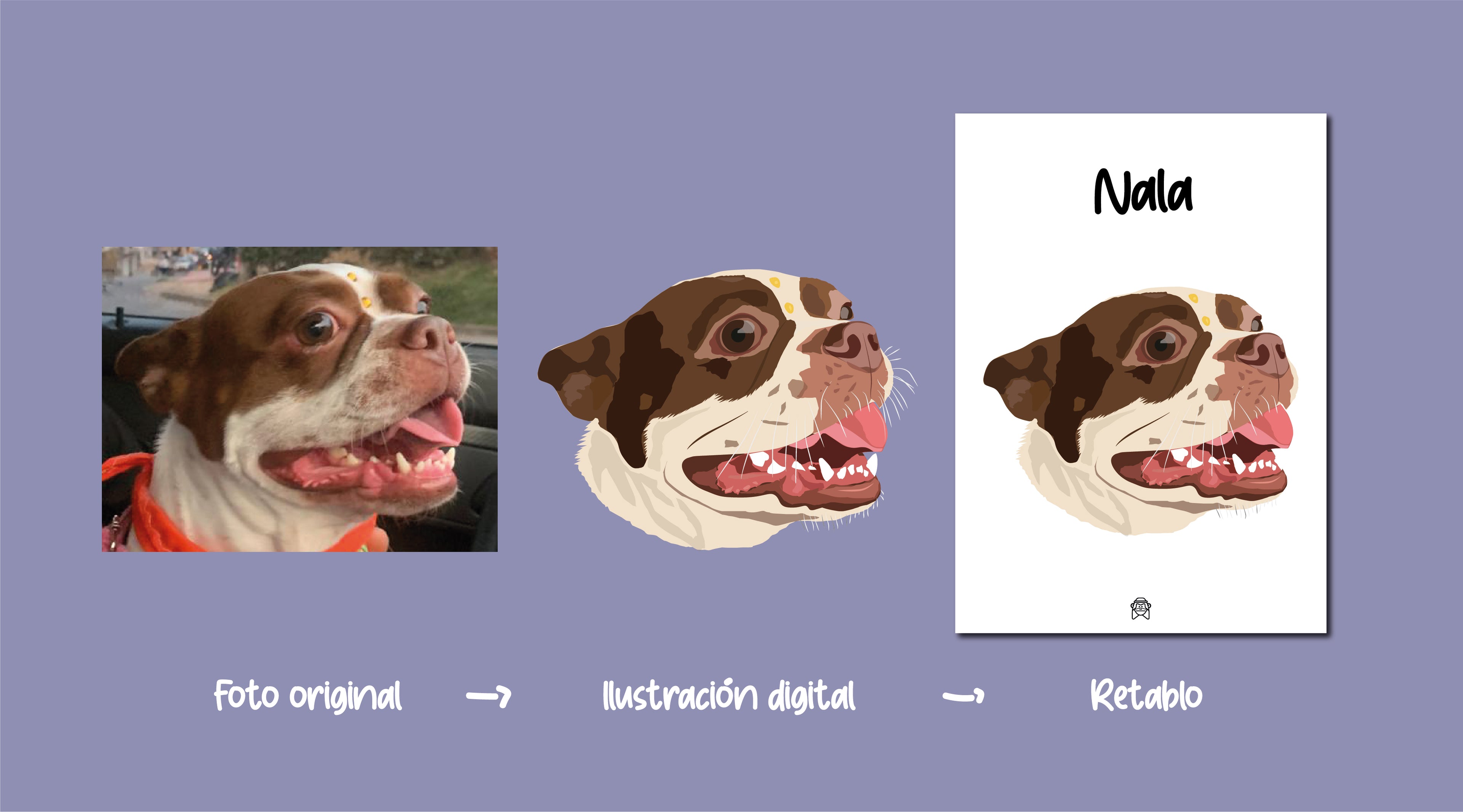 Cargas la imagen con el nombre de tu mascota y nosotros nos encargamos del resto.